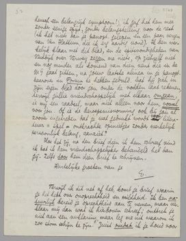Terwijl ik dit net af heb, komt je brief waarin je het hebt over onoprechtheid en mildheid. Ik ben natuurlijk bereid je oprechtheid aan te nemen, maar verklaar mij dan wat ik hierboven schreef; onttrek je niet aan een verklaring, maar leg me uit waarom ik zoo stom schijn te zijn. Juist omdat ik je houd voor een van de oprechtste en eerlijkste menschen die ik ken, begrijp ik zoo weinig van wat ik je mildheid genoemd heb. Mild is niet gaga, mild is ‘begrijpen’. Je hebt van alles begrepen, behalve dat je begrijpen van Vestdijk het gevolg had dat je Greshoff en mij in de steek liet (hoe moet ik het anders noemen?) - en ik zou toch voor het minst willen dat je dàt begreep, nu het zoover is.