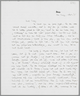 In haast even een paar regels. Ik ben door zooveel drukten overvallen, dat ik blij ben je verleden week hier te hebben gehad en niet nu; want ik ben den heelen dag ‘onderweg’ en kom tot niets particuliers. Zeer tot mijn spijt, want er ligt b.v. een brief van Klaas Klarenberg, die ik wil beantwoorden; mocht je hem zien, zeg hem dan, dat ik schrijven zal, zoodra ik tijd heb. Ik wil hem niet afschepen met een gelegenheidskattebelletje, dus wacht ik even, tot er wat lucht komt.