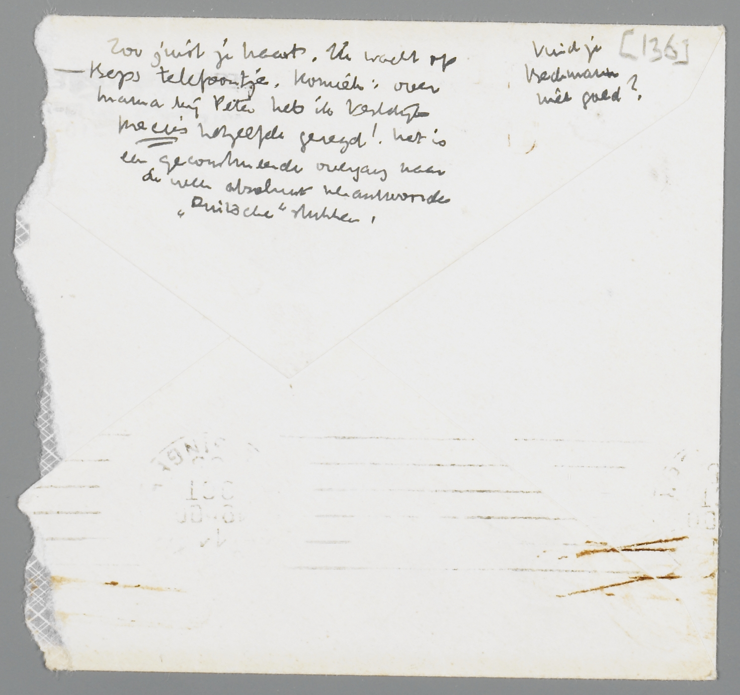 Zoo juist je kaart. Ik wacht op Bep's telefoontje. Komiek: over mama bij Peter heb ik Vestdijk precies hetzelfde gezegd! Het is een geconstrueerde overgang naar de weer absoluut verantwoorde ‘Duitsche’ stukken.