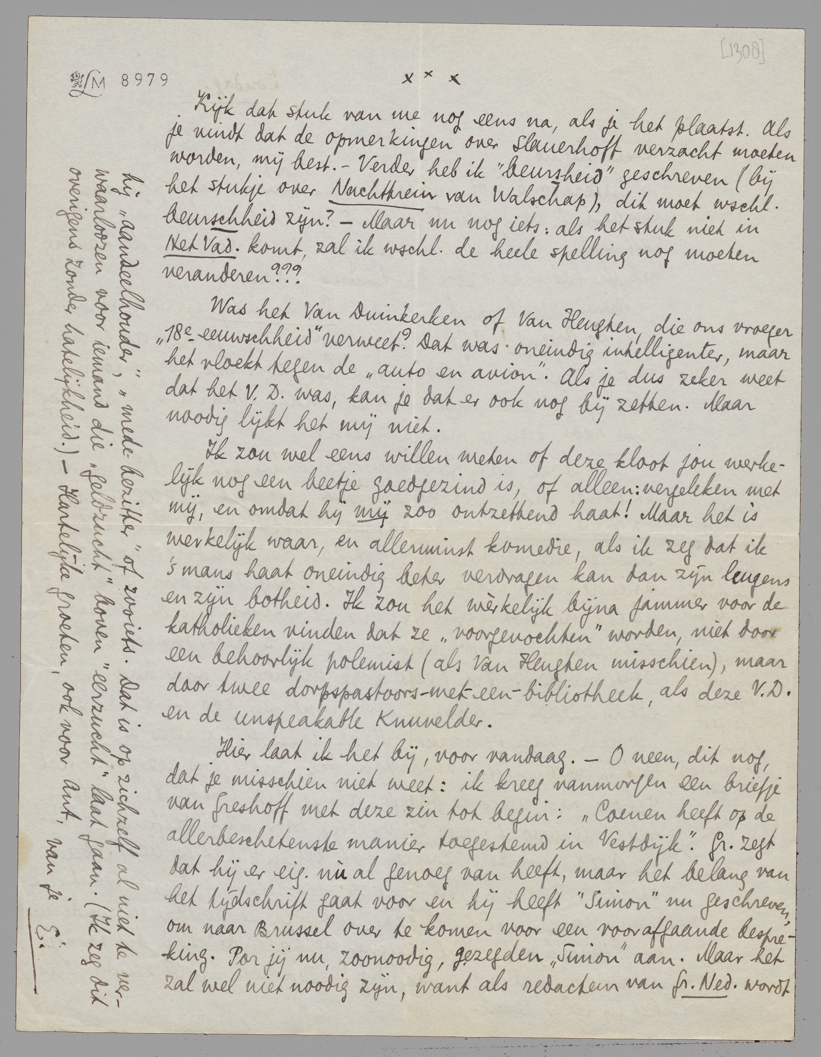 Gisteravond nog postte ik een groote enveloppe met een repliek van mij tegen V.D.; en het stukje van V.D. zelf erin. Stel me even gerust, want gegeven de Zondag heb ik het maar zóó op de bus gedaan.