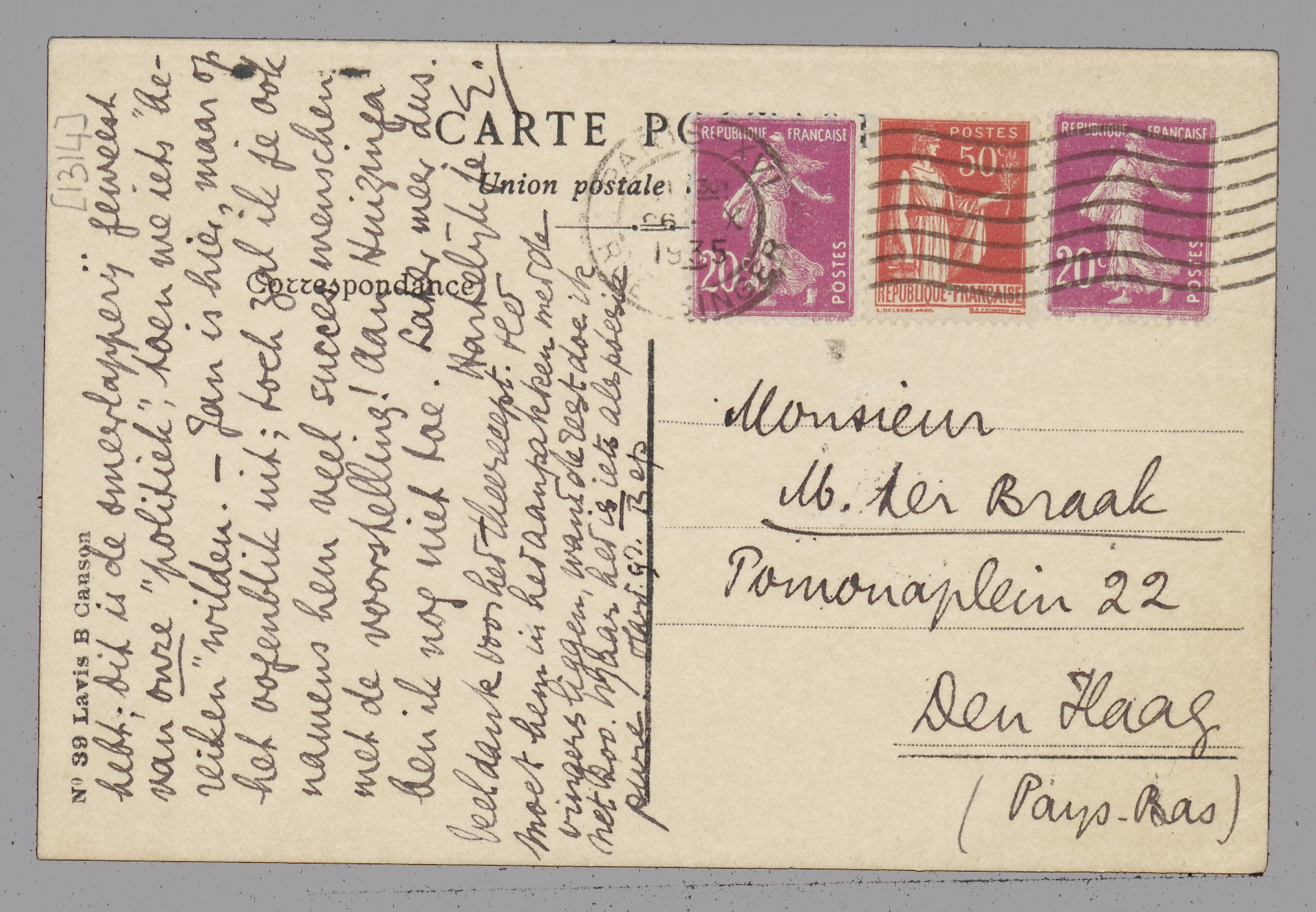[E.d.P.-d.R.:] Veel dank voor het theerecept. Het moet hem in het aanpakken met de vingers liggen, want de rest doe ik net zoo. Maar het is iets als poésie pure! Hart. gr. Bep