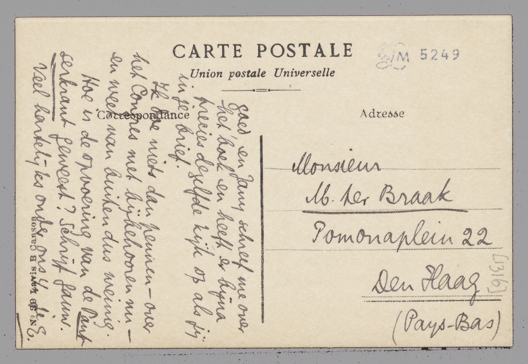 Q. schreef mij dat hij jou de copy zou sturen. Wil jij - of Ant - nu die 3 nagezonden blzn. op de juiste plaats leggen en dan de copy zoo gauw mogelijk naar Boucher brengen (of sturen)? Ik zou graag willen dat Boucher gauw besliste en mij schreef, ook met het oog op de verdere notities.
