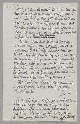 Ik ben even benieuwd als jij naar het verschijnen van Virginia, en of ze niet door ‘Doeke’ eigenhandig onteierstokt zal blijken te zijn, - aangezien de castratie bij vrouwen nu eenmaal zoo heet, zelfs als die vrouwen maagden zijn.