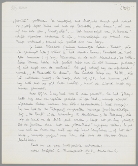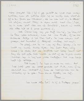 Uit een verwarde zee van krantengeschrijf, Vincent Hamanstudie, Forumgepruts etc. rijs ik weder op om je in Parijs te begroeten. Hoe hadden jullie het in Normandië? Dank voor alle levensteekenen. Ik kon onmogelijk antwoorden, de combinatie van Sinterklaas en Haman (waar erg veel werk aan heeft gezeten) was te gek. Maar de inleiding is op een oor na gevild, ook dank zij de genereuze hulp van Hein, die zich een ongeluk liep om me te helpen ‘de stukken’ te vinden. Alle personages van Paap heb ik nu zoowat geïdentificeerd; het was soms verrassend. En wat een kul er over dat boek geschreven is! Dat ontdek ik nu pas. Ik las ook de brieven van Multatuli na jaren nog eens omdat hij ook met Paap correspondeerde. Hoe voortreffelijk laten die dingen zich nog lezen, en hoe actueel zijn de problemen, waar hij mee worstelen moest! Zijn toon vind ik vaak wat hysterisch, en zijn exhibitionisme niet altijd zuiver; maar de wijze, waarop men hem met fooien liet verrekken, is dan ook zonder voorbeeld. En bovendien: uit iedere zin spreekt een man, die zich door geen middenstandspreek liet verlokken; een allernaarste reactie, die van de hollandsche deftigheid. Curieus is, dat hij op het eind geen ander middel meer ziet dan geweld en macht... maar dat hij tegelijk ook ziet, dat ze hem niet behooren en dat hij ze nooit zal hebben. Hij is tenminste niet als dupe van een ‘positie’ gestorven. De vergelijking met Nietzsche dringt zich overal op; zelfs lijkt Mimi wel wat op Elisabeth ‘das Lama’, al was zij dan ook geen ‘Ersatzehe’. - Het manuscript van V. Haman schijnt spoorloos verdwenen te zijn, waarschijnlijk op wensch van Paap verbrand, evenals zijn portret door van Looy.
