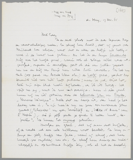 Vervolgens een geval, dat mij eraan doet twijfelen, of de wereld wel door vele millioenen wordt bevolkt. Ik kreeg onlangs een zielig briefje van Gerda, waarin zij schreef, dat haar huwelijk zoo ongelukkig was etc. Ik schreef haar daarop een vriendschappelijk en opmonterend briefje terug, ook al met de bedoeling te laten merken, dat ik geen enkele rancune meer had en het geval ‘Ilse’ allang vergeten was. Daarop komt als antwoord bijgaande brief, die je even precies moet lezen. Het is werkelijk een allerzotst toeval, dat Van Uytvanck op deze manier tot bemiddelaar maakt tusschen Het Land van Herkomst en de ‘werkelijkheid’! Zou hij met opzet deze mededeeling hebben doorgegeven? Ik vind het eigenlijk erg beroerd, want ik weet, dat zij door die passage over Ilse en Wijdenes te lezen mij alleen maar voor een infaam sujet kan verslijten, die aan vrienden particuliere bijzonderheden verklapt om ze voor een roman te laten uitbuiten. Van den opzet van H.L.v. Herk. kan zij niets begrijpen. Wat moet ik doen? Als ik haar schrijf, dat het boek niets voor haar is, te moeilijk of zoo, dan zal Valentijn na het ‘zusammen ausgehen’ heusch wel nadere omschrijving geven. En waarom zou ik dit leventje nog meer moeten verpesten! Zij meent nu in mij althans een fatsoenlijk stuk vriend te zien, die haar in ev. nood zal helpen; het weer oprakelen van een zaak uit 1931 is weerzinwekkend. Wat zou jij in dit geval doen?