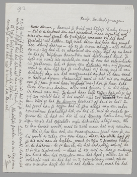 Bep meent dat er over ‘Ilse’ niets kwetsenders staat dan in het slothoofdstuk van Dumay. Ik vrees van wel, door hààr bril bekeken. Daar is: het idee dat ze ‘Frau Doctor’ zou worden (dat heb ik zelf verzonnen); dat haar moeder je vraagt of je geen ‘Ehrenmann’ bent (dat ook); de treurige en zielige komedie (dat heb ik uit Dumay); het opzenden van je halve salaris (dat heb ik ‘gededuceerd’); je ontmoeting met haar en dat ze haar baantje al opgegeven had (dat heb je me inderdaad verteld). [En après tout, laat de nadruk erop vallen dat Wijdenes een roman-personage is en blijft, ondanks alle geklets daarover in Holland en van Van Uytvanck! Natuurlijk op jou geïnspireerd - dat is onmiskenbaar - maar met allerlei verschillen en tot in gesprekken die jij nooit gehouden hebt, zelfs niet met Ducroo-Dúperon]. Als het gewoon bij de onaangenaamheid van mijn schrijverij blijft, dan wordt het een storm in een glas water, dunkt me, waarin ik de gemeene man ben; een rol die ik niet alleen met alle bereidvaardigheid op me wil nemen, maar die ik in het gegeven geval verdien. Het is nog altijd minder erg dat jij mij in vertrouwen die historie verteld zou hebben, dan om die historie in een boek te zetten! - Maar tenslotte, als het zoover komt dat zij een klacht wil indienen of mij per brief uitmaken voor al wat leelijk is, dan is dat een kwestie die mij weer betreft, en die ik dan ook alweer heb verdiend.