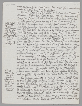 Dit alles niet vijandig, integendeel, ik zou heel vriendelijk tegen haar zijn. Maar ik zou geen lust hebben voor een boerelul door te gaan in de oogen van den meneer of de meneeren die haar hebben ‘geïnstrueerd’. (Die twee exx. die zoo overhaast gevraagd worden, vind ik werkelijk héél gek.)