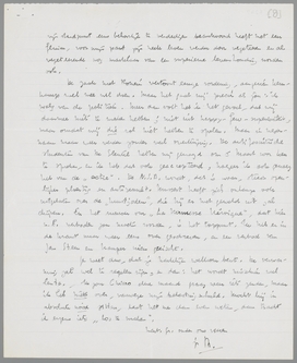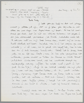 Je hebt zeker den brief van Ant wel gekregen, waaruit je gebleken zal zijn, dat we je plan zeer toejuichen en dat alleen een paar dagen onze logeerkamers zijn bezet. Ik had het voortdurend zoo druk, dat ik niet aan schrijven toekwam. Het seizoen is dit jaar abominabel vermoeiend; de laatste anderhalve week heb ik ook weer niets aan mijn boek kunnen doen, omdat mij de concentratie absoluut ontbreekt. Misschien neem ik in het voorjaar een week vacantie; in één week, die ik dan geheel voor mezelf heb, kan ik meer doen dan in drie maanden krantenvak. Ideeën heb ik genoeg, teveel zelfs, na een tijd van leegte; maar ik kan alle perspectieven niet vasthouden, gewoon omdat er telkens een lamme en idiote tooneelgeschiedenis tusschen door komt, die me nachtwerk bezorgt en dientengevolge overdag sufheid. Een enkele maal (zooals in het geval H. van Eyk) schrijf ik een artikel werkelijk voor mijn pleizier; maar wat een hopeloos trekken, als ik, zooals verleden Zondag, opruiming moet houden onder een hoop heele en halve prullen, met als culmen... Aart v.d. Leeuw! Gelukkig heb ik deze week Kafka gekozen; hoewel het niet gemakkelijk is daarover in een krant te schrijven, heeft hij tenminste boeiende substantie.