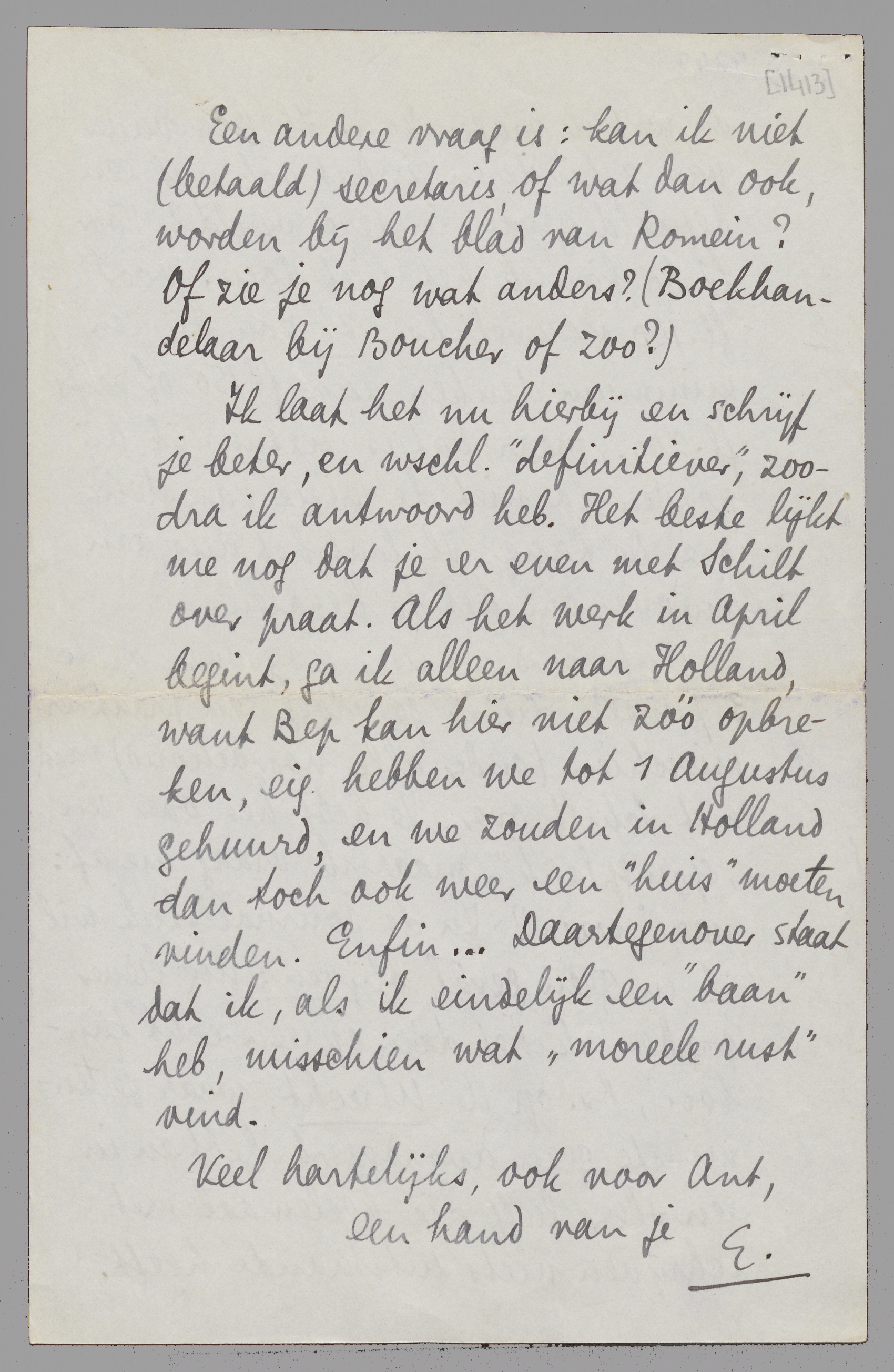 Een andere vraag is: kan ik niet(betaald) secretaris, of wat dan ook, worden bij het blad van Romein? Of zie je nog wat anders? (Boekhandelaar bij Boucher of zoo?)
