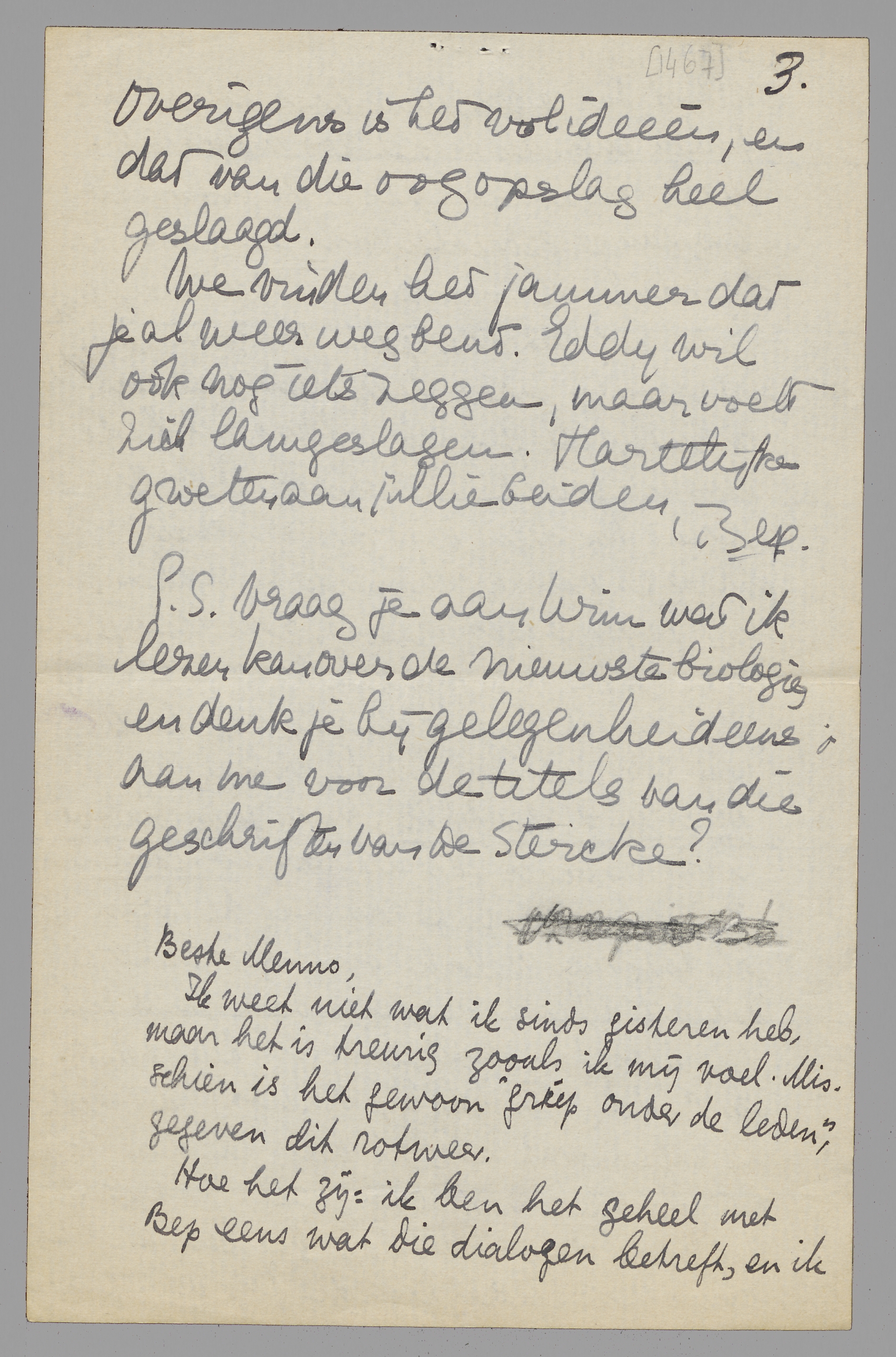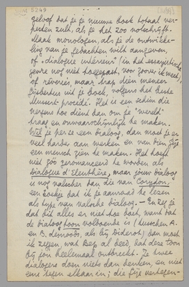 P.S. Vraag je aan Wim wat ik lezen kan over de nieuwste biologie, en denk je bij gelegenheid eens aan me voor de titels van die geschriften van De Stercke?