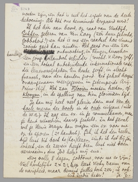 Je kan mij heel veel plezier doen met Van de koele meren des Doods in de oude uitgave (nièt de W.B.). Ik zag een ex. in je rommelkamer, maar je bent misschien daarop gesteld. In dat geval, wil je Henri Mayer dan vragen een ex. voor me op te sporen (2e handsch). Gek, ik heb den heelen tijd lust dit boek te (her)lezen, sinds ik het bij jou inkeek, en de zeereis heeft dien lust niet doen verwaaien, dus ‘God helpe mij enz.’