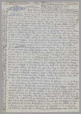 Gelijk hiermee zend ik je een indisch pendant van het interview in Het Vad., maar ditmaal echt opgesteld door iemand van het vak, een nogal geschikte kerel, ex-zeeofficier, gematigd N.S.B.-er alweer (!), die het geheel uit zijn geheugen heeft opgeschreven, zonder één aanteekening te hebben gemaakt. Als je dat bedenkt is het werkelijk nog heel aardig geworden; vooral omdat we meer dan een uur hebben gepraat, zoodat het onmogelijk was alles op te teekenen. Mijn gekanker tegen de N.S.B. heeft hij weggelaten, dat ik over Marx sprekend gezegd heb dat hij ‘natuurlijk een formidabele geest’ was, ook. Maar het portret is merkwaardig: wat een mussertiaansche kikkerbek! Als je zooiets van jezelf ziet, leer je de menschen begrijpen die de pest aan je hebben, dat is altijd dat.