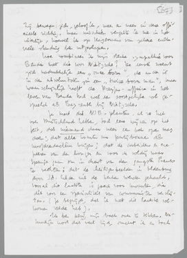 Ik ben bezig mijn boek over te tikken. Natuurlijk kost dat veel tijd, omdat ik er toch weer in zit te veranderen. Je Blocnotes voor Januari heb ik zoo zorgvuldig mogelijk (voor mijn doen) gecorrigeerd. Van mij komt er in het Jan. nummer een artikel over Gide's Retour de l'U.R.S.S. Je hebt toch gehoord, of gelezen, dat hij volkomen bekeerd uit het Stalinparadijs is teruggekomen? Hij vindt het er nog beroerder dan in Duitschland! De evangelische mensch is toch wel een verrukkelijk type. Nu zijn de Stalinisten erg boos, want Gide was altijd een sentimenteele bourgeois, die niets van de dialectische ontwikkeling heeft begrepen.