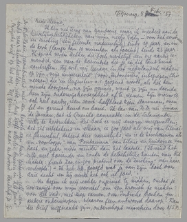 Nu begin ik mij echter ongerust te maken, omdat je zoo zwijgt over mijn voorstel om een kroniek te maken voor Het Vad., met Bep samen, over Indische boeken en andere onderwerpen. Waarom geen antwoord daarop? Kan die brief weggeraakt zijn, onderschept misschien door N.S.B. manoeuvres? Ik vroeg je dadelijk te antwoorden.