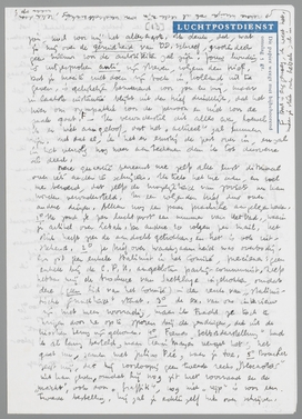 Het spijt me heel erg, dat de quaestie van die brief over D.D. je zoo ongerust heeft gemaakt, en ik ben het achteraf volkomen met je eens, dat een zending per aangeteekende de juiste weg was geweest. Het spijt mij in het bijzonder ook voor D.D., die er werkelijk wel niet meer onaangenaamheden bij zou kunnen verdragen. Maar één ding... ik ben er heilig van overtuigd, dat je deze zaak te zwart inziet. Ik zeg dat niet te mijner verontschuldiging, maar omdat ik het volstrekt meen. Dat ik zoo laconiek over dat wegraken schreef mag je al bewijzen, dat ik tot op den dag van heden geen moment serieus de mogelijkheid van een diefstal door N.S.B.-spionnen heb overwogen! Alle andere mogelijkheden zijn waarschijnlijker dan deze eene. Vooreerst is mij van een ‘controle’ op correspondentie tusschen Jan en mij nooit iets gebleken; er is nooit een brief verloren gegaan (evenmin als tusschen jou en mij, afgezien van één naar Bretagne, een paar jaar geleden), er is nooit iets gebleken van beschadiging of poging tot openen etc. etc. Ik heb dezen brief ook niet speciaal naar Jan gestuurd om hem op de hoogte te stellen van de zaak D.D., maar hem inzage van óók dezen brief gegeven, omdat hij er uit vriendschappelijke overwegingen prijs op stelt van je faits et gestes op de hoogte te blijven; ik zend hem geregeld jouw brieven aan mij, en hij mij de jouwe aan hem gericht. Aangezien hij, zooals je weet, geen enkele relatie onderhoudt met N.S.B.-spionnen of hooge ambtenaren, leek mij dit volkomen ongevaarlijk; verder is natuurlijk niemand op de hoogte van de quaestie van de boekuitgave en wat daarmee samenhangt. Ik erken, dat jouw mogelijkheid niet geheel verworpen kan worden, maar ik heb geen moment anders verondersteld, dan dat een gauwdief naar een bankje heeft gezocht, omdat de brief met 20 ct. gefrankeerd was. Het lijkt me dus zeer onjuist voortijdig ongerust te zijn over iets, dat hoogst waarschijnlijk geen grond heeft. Tenslotte is de correspondentie tusschen Nederland en België toch geen correspondentie tusschen Nederland en Indië. Ik geloof niet aan een doelbewuste spionnage; niet omdat ik de N.S.B. er te goed voor acht (integendeel!), maar omdat ik geloof, dat ze andere objecten kiezen om in de gaten te houden dan mij. Een soortgelijk onderscheppen door een postambtenaar is geen lolletje en wordt zeer streng gestraft. Wat voor D.D. geldt, geldt, zoover ik weet, niet voor mij; ik heb geen enkele aanwijzing voor spionnage of briefcontrole. (en dat, terwijl ik telkens brieven ontvang van Loenen, den secretaris van Waakzaamheid!). Ik heb natuurlijk al gereclameerd.