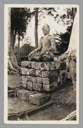 Ik stuur jou speciaal deze pop - een grappemaker die op de bodem van de hoogste stoepa (heiligste v/h heiligste) werd gevonden en omdat hij, leelijk, banaal maar onaf, voor de Oer-Boeddha wordt aangezien. Vmdl. hebben teleurgestelde schatgravers dit ergens opgeraapte beeld daarin gegooid - als probleem voor latere geleerden. Maar hij is nu met mysterie besmet, en zit waardig en met grijswit mos bedekt op den weg v/h monument. Wij gaan verder. Veel hartelijks, ook voor Ant van ons twee, steeds je