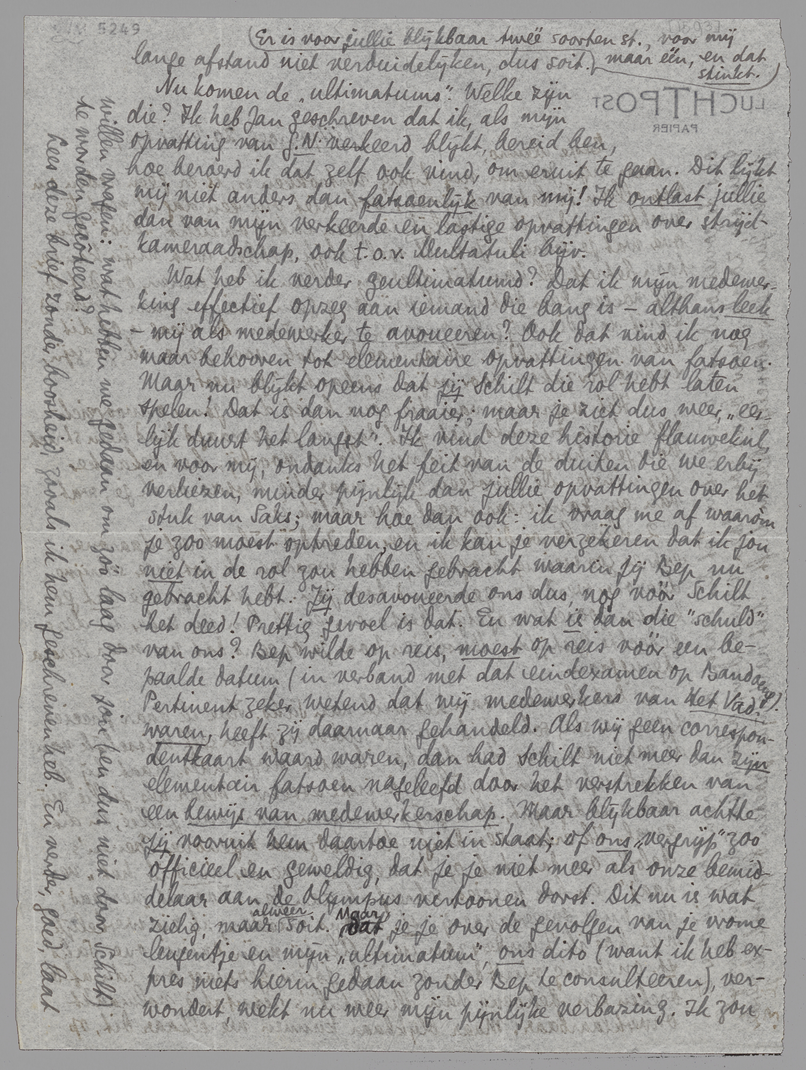 Nu komen de ‘ultimatums’. Welke zijn die? Ik heb Jan geschreven dat ik, als mijn opvatting van G.N. verkeerd blijkt, bereid ben, hoe beroerd ik dat zelf ook vind, om eruit te gaan. Dit lijkt mij niet anders dan fatsoenlijk van mij! Ik ontlast jullie dan van mijn verkeerde en lastige opvattingen over strijdkameraadschap, ook t.o.v. Multatuli bijv.