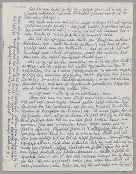 Ik schreef je gister een briefkaart over het 5e Zegel, maar Bep, die het ding naar de post bracht, vergat er een luchtpostfrankeering op te doen. Dus sjokt deze ‘opinie’ van me langzaam naar je toe. Enfin, haast wàs er niet bij. Vandaag sjokt dit er nog achteraan. Ik kreeg dit gister nog op mijn hoestersbed. Iedereen denkt hier in Indië dat ik ‘ontvlam’ en boos ben, als ik voor mijn eigen gevoel nog maar aan een ‘gezellige’ contraverse toe ben. Hoe zou dat komen? Ben ik zoo ‘explosief’, zooals Ritman zegt, of zijn deze Hollanders zoo gezapig? Je krijgt wèl gelijk, wat de verkeerde toon in corresp. betreft, want met Querido was het ook slag op slag zoo.