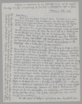 Tot zoover; dit is eig. een supplement op mijn vorigen brief. Ik ben niet in mijn sas; physiek niet, maar nog veel minder moreel. Ik wil terug naar Europa. (Maar Bep profeteert dat we dan ook ‘niet lachen zullen.’)