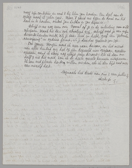 Kan je je met Jan en Gr. Ned. dus verstaan om van deze reeks de laatste te maken? Daarna kan ik me met de boekuitgave bezighouden. Als Jan en jij perse geen uitgever weten in Holland, die 450 blzn. wil uitgeven voor zijn (gedeeltelijke?) risico; informeer dan naar een goedkoopen drukker en een uitgever die zich dààrmee zou willen bezighouden. Ik zal zelf - met Bep - hier nog wat schiften. Voelt niemand ervoor, dan wend ik me tot Querido en vraag zijn condities en wat 't bij hèm zou kosten. Een deel van de oplage maak ik zeker goed. Maar 't stuit me tegen de borst om dit boek in te houden, omdat Jan Lubbes er zoo tégen is.