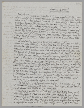 [E.d.P.-d.R.:] Ik vind dat we te weinig over Ant hooren. Ik schrijf ook wel niet, maar mijn kreten en zuchten dringen toch zoo af en toe in het proza van Eddy door. Dus, als Ant er zelf niet toe komt, laat dan een volgend epistel van Menno aan haar gewijd zijn. Onze plannen veranderen 3x per dag; gister schreef ik als afzendersadres op een brief: duP. West 9a Batavia?, en had toen het gevoel dat ik weg moest voor het onherstelbaar werd. Maar nu is er weer een idee van een terugreis met oponthoud in Makassar - dat we dus tegelijkertijd zouden moeten uitvoeren -, vanwaaruit we de Toradja's kunnen bezoeken, boven komen drijven. Enfin, we telegrafeeren wel op de dag dat we vertrekken, nu of over vijf jaar.