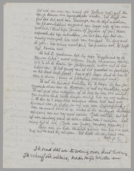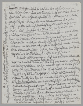 Wat nu je inlichten betreft over het archiefdiploma, goed, dus géén halen! Maar nu die leeszaalkwestie. Ik zou daar natuurlijk wel serieus op willen ingaan, maar weet niet hoe, of liever, zou dan van jou nog even moeten hooren waar 't eigenlijk op neerkomt. Is 't een werkje waarbij je 't publiek moet bedienen, dus zooiets als boeken-kelner, dan lokt 't me niet erg aan. Is 't menschwaardiger: bv. boeken nazien, uithalen, catalogiseeren, etc., dan wel. Ik zou dan kunnen probeeren bij dien Greve examen te doen. Maar als je 't vervelend vindt, ga dan niet met hem praten vóór je precies weet waar dit vak toe leidt.