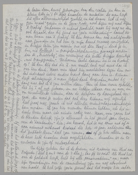 Gister schreef ik je een vervelende brief, waar ik alweer een soort wroeging over heb, want het is net of ik dit alles doe om je te pesten. Maar hierbij de briefjes van Jan; lees en verscheur ze. - Nu is 't bovendien net of ik bij je klagen kom - of kwam - over Jan, en dat is toch het geval niet. Ik ben niet in 't minst kwaad op hem; integendeel, ik begrijp drommels goed dat hij zelf er beroerd voor zit. Maar ik voel me wel verdomd veraf zitten, zoo langzamerhand, en deze manier is onfeilbaar om dat gevoel zijn maximum effect te verleenen. Wil je me gelooven, na zoo'n uiteenzetting als nu over Gr. Ned. - die me zelf natuurlijk ook duidelijker maakt wat ik al ruim een jaar voel - heb ik eigenlijk lust om dat heele plannetje van ‘met z'n drieën’ over Henny's werk te schrijven, aan anderen over te laten. Heusch, ik hoor er eigenlijk niet meer bij. Als H. er niet zelf zoo op gesteld was, zou ik zeggen: laat Engelman over de poëzie schrijven en jij en Jan in de gewenschte verdeeling over de proza's. Ik schrijf dan wel een artikel over de heele boel tegelijk in 't Bat. Nwsbl., waar ik thuishoor, tegenwoordig. Maar Henny zou mij dit misschien kwalijk nemen, en dan terecht. Geloof met-dat-al niet dat dit in de eerste plaats rancune is; het is compleet in één woord te zeggen: alle plezier in Gr. Ned. is voor mij er af. Wiens schuld dat precies is, kan mij ook al niet schelen; voor mijn part uitsluitend mijn schuld, - omdat ik het bèst had moeten vinden dat Gr. Ned. bij de Mult.-herdenking sprak met den mond van den ouden heer Saks. Of zouden er grieven zijn (ongewetene) van nòg ouder datum? Eigenlijk geloof ik zelf niet dat die Saks-historie de ware - of zelfs maar oudste reden is: die moet dieper liggen; misschien is het een ‘gewone’, z.g. natuurlijke, verwijdering tusschen Jan en mij. Door den druk van de crisis, van de jaren, van den afstand of wat dan ook. Nu, basta.