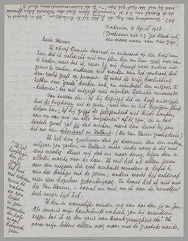 P.S. - Bij 't afmaken van dezen brief is mijn pyama zoo doorweekt van 't zweet dat ik eruit zie of iemand een glas water over me heeft uitgestort!
