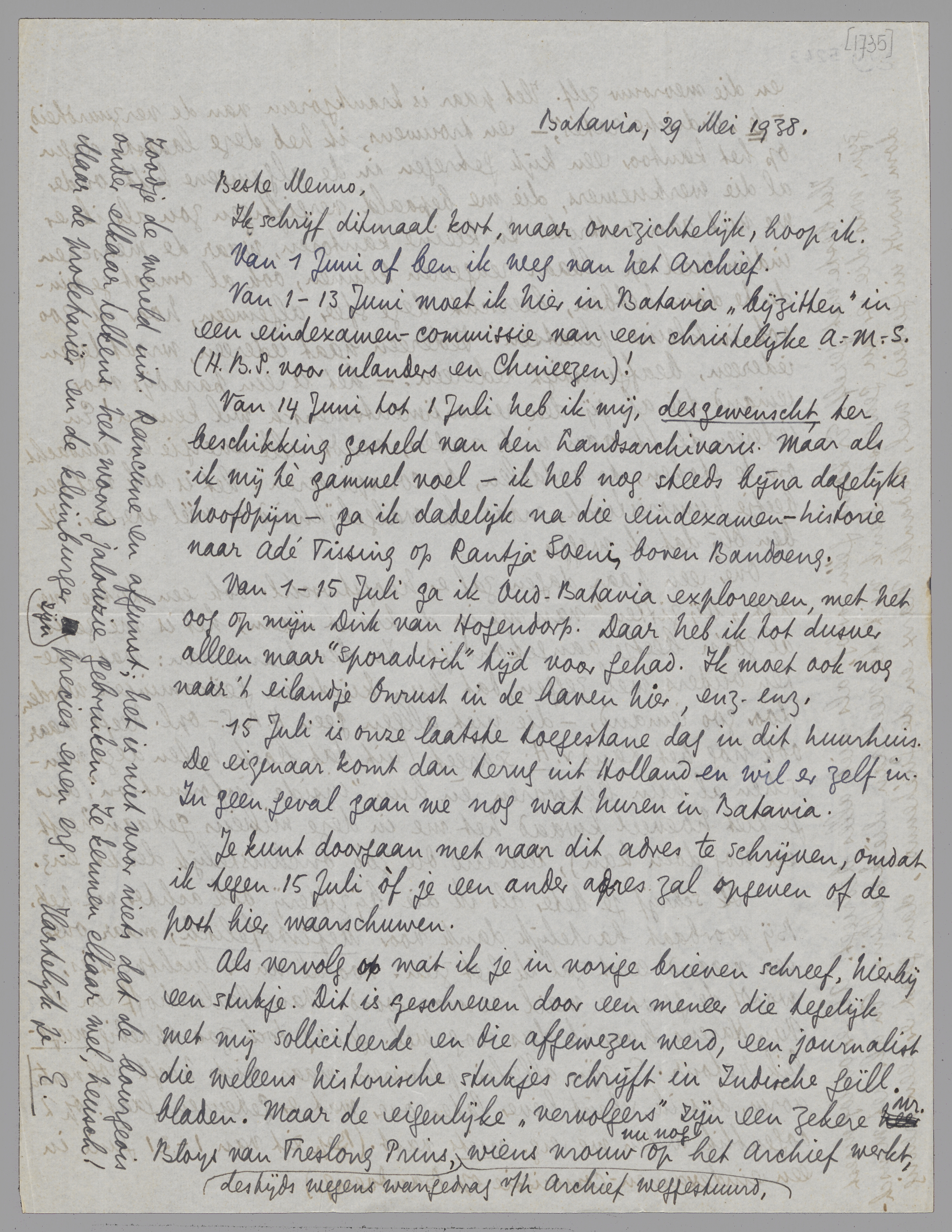 Van 14 Juni tot 1 Juli heb ik mij, desgewenscht, ter beschikking gesteld van den Landsarchivaris. Maar als ik mij tè gammel voel - ik heb nog steeds bijna dagelijks hoofdpijn - ga ik dadelijk na die eindexamen-historie naar Adé Tissing op Rantja Soeni, boven Bandoeng.