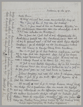 Dit komt er nog bij, omdat ik jou haast vergeten zou. Maar het zou toch niet erg zijn geweest, in dit geval, je zult zien waarom. Ik heb met Brugmans gesproken, nu een dag of vier geleden. Het schijnt dat het plan toch nog altijd bestaat dat hij naar Holland zal gaan voor die Universiteit hier, maar die komt zelf eerst in 1940. Er is geen geld! En vóór 1940 zijn misschien de Japanners hier, God weet, of het geld is heelemaal op! Maar hoe dan ook, hij had zeker ooren ernaar om jou op te zoeken en met je te praten, ook in verband met dit hoogleeraarschap. Hij heeft de grootste waardeering voor je stukken, en wist dat je cum laude bij Pa had gehaald. Ook tegenover mij is hij vol goede bedoelingen, geloof ik. Het is een beetje een nette man, maar dat zegt niet alles; het zou mij niet verwonderen als hij ook op betere gronden proper en sympathiek kan worden genoemd. Hier in Batavia hoort hij tot de heel aangenamen.