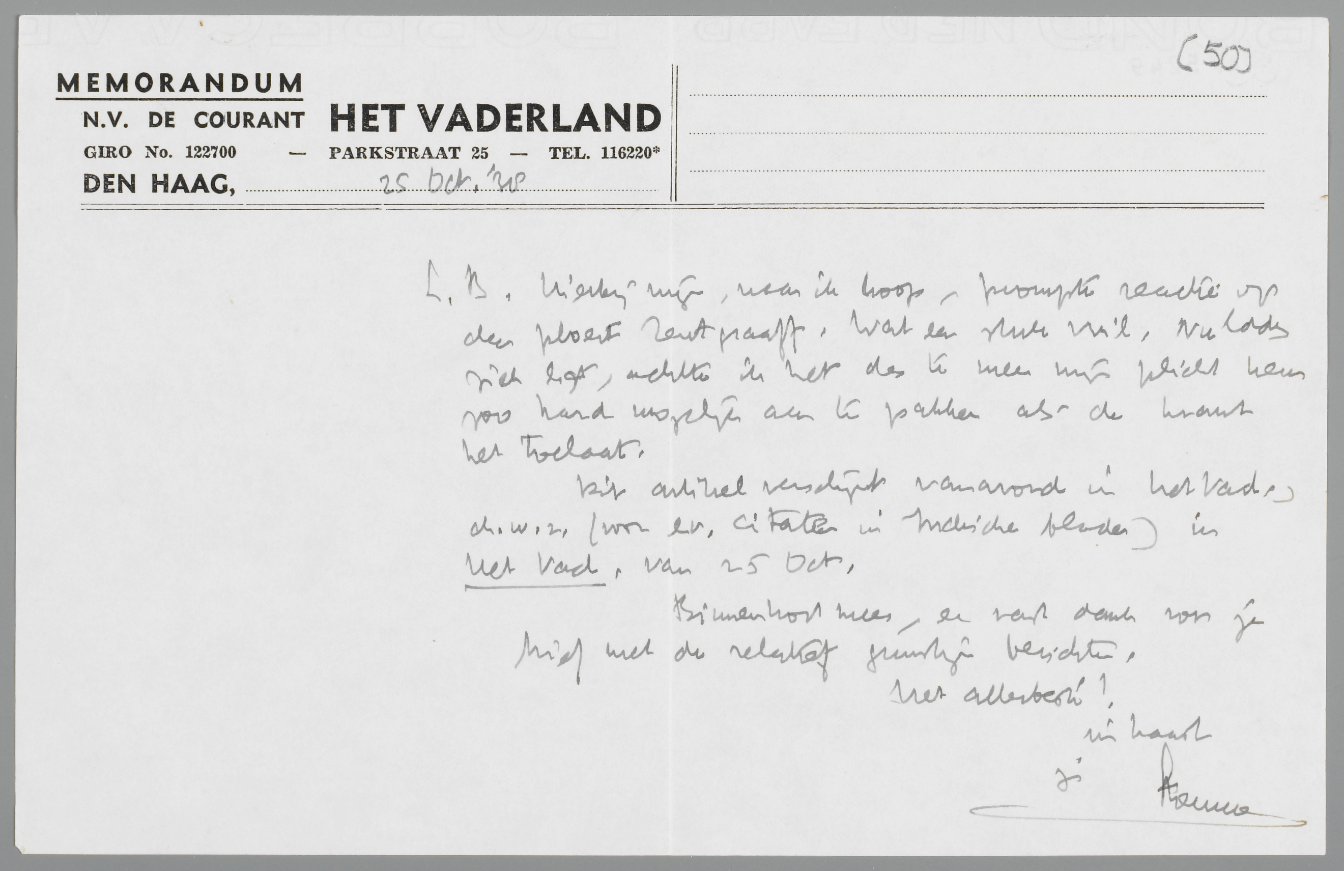 Dit artikel verschijnt vanavond in Het Vad., d.w.z. (voor ev. citaten in Indische bladen) in Het Vad. van 25 Oct.