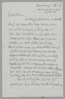 Ik was erg getroffen door je brieven, waarvan ik er een in 't hospitaal las, en de ‘riposte’ op het stuk van Zentgraaff, die wij zooeven ontvingen. Dank! Je stuk is in menig opzicht met de juiste dosis tact (beleid) geschreven, en als het Bat. Nwsblad een blad met éénige moed was, zouden ze het daar, althans gedeeltelijk, overnemen. Maar daar is vrijwel geen kans op, gegeven de doodsangst van deze heele provincie voor den pallurk Z. Er heeft een ‘fatsoenlijke’ verdediging van mij gestaan in Het Indische Volk, een klein socialistenblad hier, en er komt er nog een in Kritiek en Opbouw (dat je nu kent - 200 abonnés tegen de 4000 van de Java-Bode), beide van denzelfden man: een néerlandicus genaamd de Vries, op 't oogenblik wd. bibliothecaris v/h Bat. Genootschap, socialist, en iemand die ik bijna niet ken. Wel aardig, zooiets, want hij schreef mij dat hij ‘helsch’ was over 't moois van Z. - Met-dat-al, laat ons vaststellen dat ik 't heb uitgelokt met mijn kritiek op Atjeh (heb je die nu ontvangen?), omdat deze alomgevreesde mij, zooals je weet, allang de keel uithing. Ik ga nu mijn tegenstuk schrijven, - voor het kleine Kr. en Opb., als 1e ‘bijdrage tot betere kennis van de provincie’.