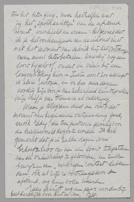 Toen ik je brief las, had ik het gevoel, dat ik je tòch had moeten telegrafeeren toen het beter ging, maar hetzelfde wat jij het ‘spookachtige’ van de afstand noemt, weerhield me ervan: het gevoel dat ik je het verheugende van de inhoud niet met het moment van schrik bij het ontvangen ervan moest laten betalen. Daarbij nog een soort bijgeloof, omdat de crisis bij een longontsteking hier in Indië nooit zoo abrupt is als in Europa, en er dus meer dagen noodig zijn vóór je van zekerheid kunt spreken. Mijn briefje was trouwens al onderweg.