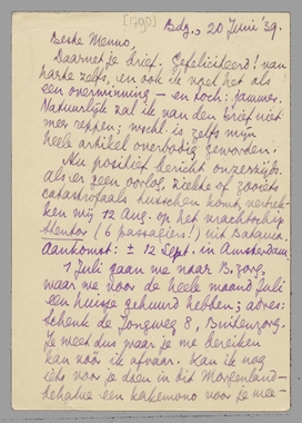 Ik denk dat we den eersten tijd wel bij Bep's oom en tante Simons in Amsterdam zullen logeeren, maar je ziet me toch spoedig bij je in Den Haag, denk ik.