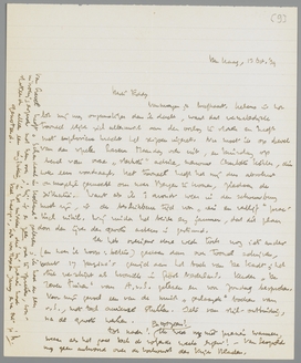Vanmorgen je briefkaart. Helaas is het lot mij nog ongunstiger dan ik dacht, want dat vermaledijde tooneel blijkt zich allerminst aan den oorlog te storen en heeft met explosieve kracht het seizoen ingezet. Nu moet ik op bevel van den speler Laseur Maandag ook uit, en Dinsdag op bevel van onze ‘sterkste’ actrice, mevrouw Charlotte Köhler, die weer eens voordraagt. Het tooneel heeft het mij dus absoluut onmogelijk gemaakt om naar Bergen te komen, ziedaar de situatie. Want als ik 's avonds weer in den schouwburg moet zijn, is de beschikbare tijd voor ‘reis en verblijf’ practisch nihil. Wij vinden het beide erg jammer, dat dit plan door den ijver der groote acteurs is gestrand.