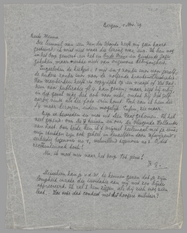 Bep is tevreden en moe uit Den Haag gekomen. Ik heb veel gepend: over De 7 tuinen en over De Vliegende Hollander van Last. Over beide ben ik 't vrijwel heelemaal met je eens; mijn stukken zijn ook geheel in denzelfden toon ‘afwijzend’: eerbiedig tegenover no 1, welwillend tegenover no 2. O, dit recensentenvak toch!