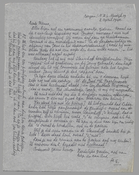 Vandaag heb ik mij met Slauerhoff beziggehouden. Mijn ‘rapport’ heb ik geschreven en bij Jany gebracht; dan heeft alvast één lid v/d Commissie het gelezen vóór het Bergen verlaat. Jany stuurt je dat ‘rapport’ door.