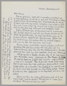 P.S. Je moet bepaald meewerken aan Elsevier's! Ik kreeg daar even f 56. voor mijn Mult.-stuk. Verder een lieve bedankbrief van Hein.