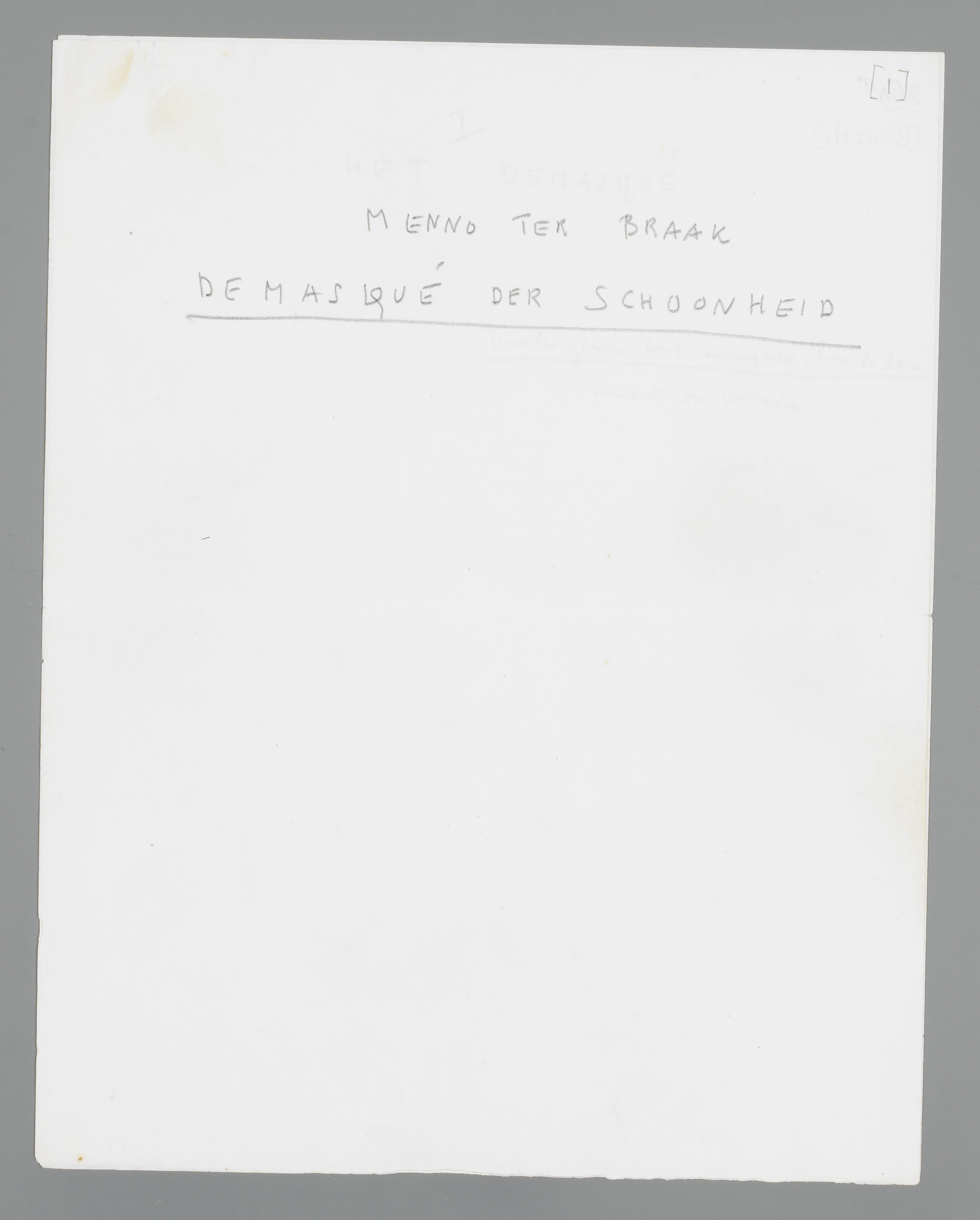 Er is nog een derde mogelijkheid in den strijd met den vorm; maar over die mogelijkheid kan men pas spreken, wanneer men aan den lijve de smadelijke nederlaag van het aesthetisme gevoeld heeft, wanneer men persoonlijk ervaren heeft, hoe de schoonheid, die u van de natuurlijkheid der natuur verloste, die u bevrijdde van de beklemming der gemeenplaatsen, een nieuw net van gemeenplaatsen over u heeft uitgespreid. Het is pas mogelijk, het démasqué der schoonheid onder oogen te zien, als men zoo lang de waarheden der aestheten heeft nagepraat, dat men van hun onweerlegbaarheid wee is geworden. Maar wie de schoonheid wil demaskeeren, zonder ooit geweten te hebben, wat schoonheid was, verschilt niet van dat bekende type vrouwenhaters, die door hun haat moeten verbergen, dat zij te linksch waren om met vrouwen om te gaan. De derde mogelijkheid, het démasqué der schoonheid, veronderstelt, dat men de schoonheid gekend heeft en liefgehad, toen zij bevrijding en verlies beteekende, en dat men haar daarom is gaan verachten, toen zij het devies eener côterie ging worden. Want heeft er ooit een démasqué plaats vóór het bal?