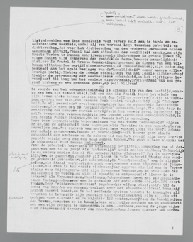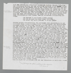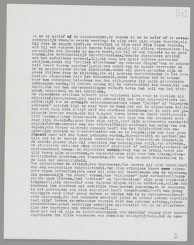 genre (deze schrijft onfeilbaar over poëzie, gene over proza, van elkaars gebied moeten zij afblijven), of zij openbaren zich in hun meest geëigenden en sympathieken vorm: als kunstenaars, begaafde en beperkte werklieden tout court, die ‘creëeren’ en qua talis voortdurend met den weerstand der natuur moeten worstelen. Het is geen wonder, dat kunstenaars, wier werk allerminst beperkt-aesthetische waarde heeft, er zulke beperkt-aesthetische theorieën op na houden, dat men hen, als zij betoogen, nauwelijks au sérieux zou nemen; want voor hen is de theorie louter begeleidend symptoom, werkmethode, noodzakelijke ‘Blödsinn’, die hen blind maakt voor andere waardeeringen, wier gehalte hun vreemd moet zijn. De kunstenaar moet, als hij werkt, de natuur een zekere verachting toedragen, en daarom kan men van zijn theorieën veel vergeten; de kunstenaar is dikwijls aestheet naast en ten behoeve van zijn werk, terwijl zijn werk daarvan de ‘onaesthetische’ voordeelen ondervindt. (Nijhoff).