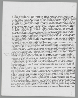 Men kan deze neiging tot coquetterie met God en zijn scheppingsdaden beschouwen als een gebrek aan humor, maar ook als een vorm van ‘höherer Blödsinn’. Het is een bij aestheten veel voorkomend verschijnsel, dat door de toewijding besteed aan de aesthetische onderscheidingen alle zin voor verhoudingen verdwijnt, dat, met andere woorden, de natuur hun vreemd en zelfs ontoegankelijk wordt, terwijl de kunstphaenomenen als kwaadaardige tumoren het gansche natuurlijke weefsel aantasten en overwoekeren. Dat dit proces zich niet in de eerste plaats in de theorie, maar juist in de practijken der aestheten laat gelden, is duidelijk; geen proces komt in het theoretisch bewustzijn, voor het zich aan de organen heeft gemanifesteerd. ‘Höherer Blödsinn’ is in het gebied der aesthetica de disproportioneering van de verhouding kunst-natuur. Theoretisch blijft de natuur bij de aestheten in eere, practisch begint zij geleidelijk aan te degenereeren. Zoo ontstaat allereerst het onmaatschappelijke artisten-type, dat men op honderd pas afstand herkent; een verstarring van de puberteitsrévolte in een volwassen uiterlijk. Dit type heeft de onmaatschappelijkheid als welvaartsleuze gekozen; het heeft het verzet tegen de natuur zelfs in een kleedingformule willen vastleggen, het heeft de flodderdas en de sandalen met graagte als aesthetisch onderscheidingsmiddel aangegrepen. Het zijn natuurlijk bij voorkeur de slechte aestheten, de halfbakken aestheten met de grove onderscheidingen, die van deze grove paardenmiddelen gebruik maken om tegen de natuur te protesteeren; de beteren doorzien dit spel, de ‘Blödsinn’ besluipt hen onmerkbaarder. Zij openbaren zich als kunstkenners, als objectieve critici met een onfeilbaar oordeel over een bepaald