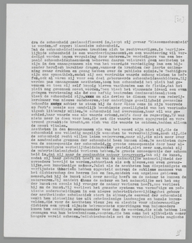 Wie de schoonheid ‘waardeert’, zooals ‘men’ dat pleegt te doen, heeft met de schoonheid afgedaan; immers zij schaadt hem niet meer, zij drijft hem niet meer tot protest, zij verandert en zij bevrijdt hem niet meer. Wil men daartegen inbrengen, dat men toch waarlijk héél veel aan de schoonheid hebben kan, zònder die groote woorden ‘verandering’ en ‘bevrijding’, dan zal ik er niet aan denken, dat te ontkennen; want, nogmaals, het gaat er om, wat de schoonheid voor iemand beteekent. Het gaat dus eigenlijk niet om de schoonheid, maar om de verlossing der schoonheid uit de handen der aestheten; het gaat tusschen de schoonheid als soepsnuiverij en als bevrijding. Wie de eer-