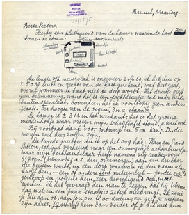 Wat denk je van mijn voorstel van gisteren? (aangaande no 1.) Nog iets: met ‘illustreeren’ van de twee bedoelde stukken, n.l. die van Willink en jou, bedoelde ik het in den tekst zetten van een of ander cliché, natuurlijk niet een speciaal voor den tekst vervaardigd plaatje; begrijp me dus niet verkeerd. Zou je dus event, iets hebben wat je geschikt lijkt? bij je eigen stuk natuurlijk iets van jezelf, maar bij dat van W.? Het zou mij n.l. aardig lijken als ons eerste nummer reeds ‘geïllustreerd’ uitkwam.