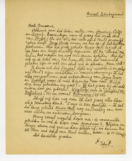 Schrijf mij hier nog over. Ik had graag alles klaar als je Woensdag komt. 5 uur is zeer geschikt. - Ik zal het lange gedicht Music-Hall nog aandachtig van voor naar achter, en andersom, doorgaan.