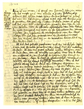 Ik ben zéér tevreden met uw brief! U is een van de weinige Nederlandsche jongeren die mij werkelijk sympathiek zijn, door hun werk, en buiten hun werk om. Ik waardeer het zoo in u dat u buiten al die groepeerinkjes staat. Ook daarin komt uw ziekte u wschl. ten goede. Wat is de literaire politiek grenzeloos eng en dom! De ziekte die u heeft is mij inderdaad vnl. door Paul van Ostaijen bekend, maar ik ben er lang door bedreigd geweest en mijn constitutie past zich deze klimaten nog altijd niet al te best aan. Kortom, de borst is ook mijn zwakke punt (zie b.v. sommige regels in Windstilte). Is mijn schrijverij u werkelijk zoo dikwijls geheel vreemd? Ik begrijp dit niet goed; het verschil van ‘genre’ kan daar toch niet de reden van zijn, en een beetje goede wil is voor u, dunkt mij, voldoende om door een zekere pose heen te zien. Laat ik u wat helpen met dit citaat uit Gogol (dat ik bijna als epigraafin B.G.a.E. had gezet468): ‘Weinigen hebben vermoed dat zij, toen zij om mijn personages lachten, om mij gelachen hebben.’ Ik ben Nameno geweest, Otto, Bennie, enz. - aldus beschouwd wordt het toch een heeleboel minder supreem? In ieder geval, ik voor mij heb niet de minste moeite met uw verzen. De vroomheid daarvan treft mij onmiddellijk, met al haar echtheid, haar innigheid, haar smaak en haar beheersching. De schrijver van het Gebed bij den Harden Dood is natuurlijk - nietwaar? - verwoed on-vroom. Ik heb een hekel aan het krachtelooze gecoquetteer van de meeste katholieke jongeren, en hun vervloekte: dit moet en dat moet niet. Niets moet. Iets is, of is niet. Bijna al uw verzen (ik spreek van Grenzen*) zijn; en verreweg het meeste werk van allerlei a priori Godsdienstige auteurs wil alleen maar zijn. Anders gezegd: ik geloof dat men een bekrompen idioot moet zijn om Revius niet te genie-ten, zoo goed als Tristan Corbière, maar ik geloof ook dat men héél intelligent en gevoelig kan zijn en zijn neus ophalen voor de ethische afkooksels van Wies Moens. En niets amuseert mij meer in de literatuur dan wanneer mijnheer Jan Engelman de verbolgenheid van den Staat (vroeger zou het zijn geweest: van de Jezuïeten) inroept over een verhaal van mij469 - en misschien binnenkort over Den Harden Dood?...
