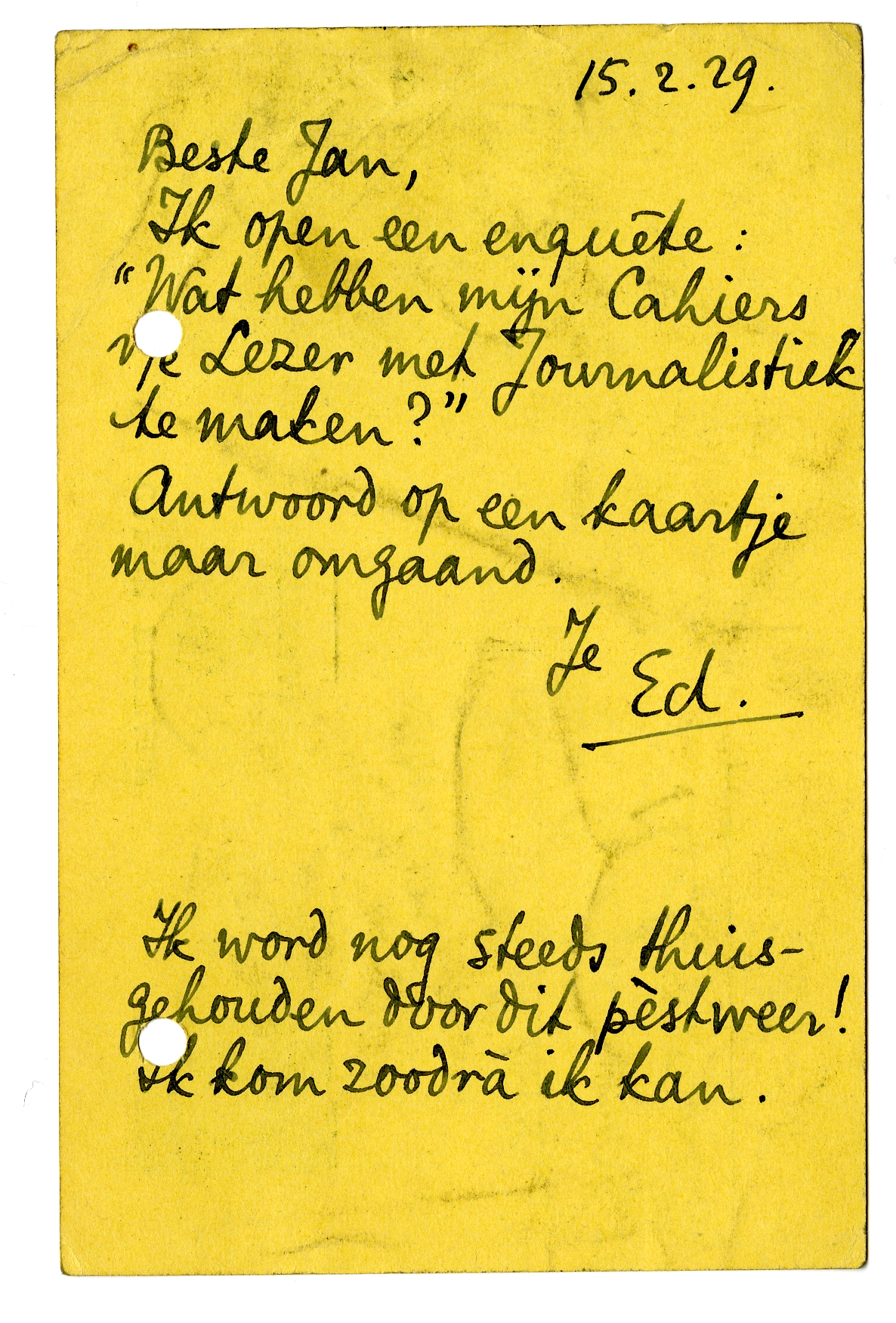 Ik open een enquête: ‘Wat hebben mijn Cahiers v/e Lezer met Journalistiek te maken?’