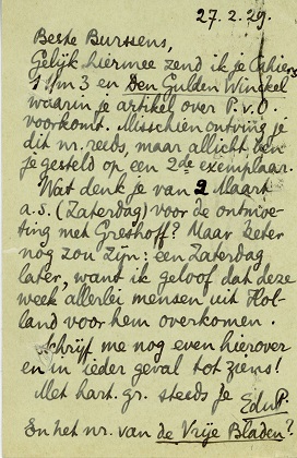 542‘Paul van Ostaijen als vriend. Herinneringen.’ In DGW 28 (1929) 2 (febr.), p. 36-37.