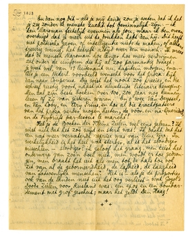 Je houdt het mij ten goede dat ik mezelf citeer, het gebeurt langs mijn neus weg, met een glimlach op m'n facie. Ik wou hièrop neerkomen: àls je novelle - de ‘grootscheepsche mislukking’ - ressorteert onder het proza dat Marsman interesseert,* dan heb je wschl. gelijk met je op zijn oordeel te verlaten. Maar als je schrijft als ik-ik spreek nu niet van Bij Gebrek aan Ernst, of alleen van het laatste deel daarvan, ik denk meer aan de 5 verhalen van Nutteloos Verzet die je niet kent, en waarvan 2 of 3 mij werkelijk ‘in de goede richting’ lijken-dan zou ik in jouw plaats dat oordeel beschouwen als te zijn van zéér relatieve waarde. Gooi in ieder geval je eerste lezing niet weg, en als je wilt, neem over een tijdje eens de proef op mij: zend mij de beide lezingen, zonder mij te zeggen welke de eerste en welke de tweede is en laat ons dan eens kijken wat mij het meeste treft.