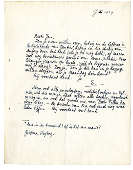 Neem ook alle enveloppen, notitieboekjes en dgl. mee, uit die mand.664 Laat alleen alle boeken vooreerst er nog in, en ook het groote ms. van Trois Filles de Leur Mère.665-De brieven van Pia ook eerst nog wat laten liggen. - Bij voorbaat veel dank.