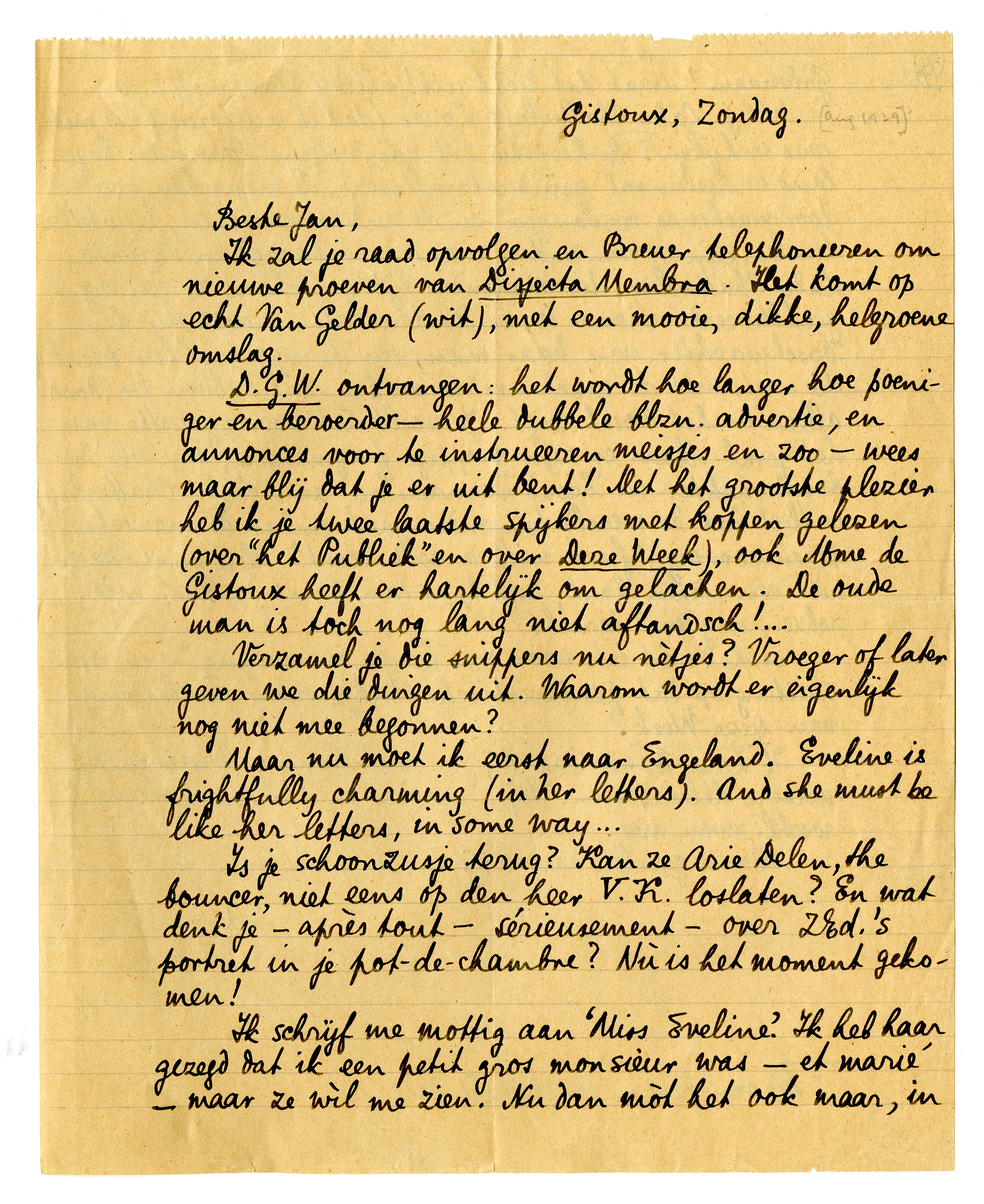 Maar nu moet ik eerst naar Engeland. Eveline is frightfully charming (in her letters). And she must be like her letters, in some way...